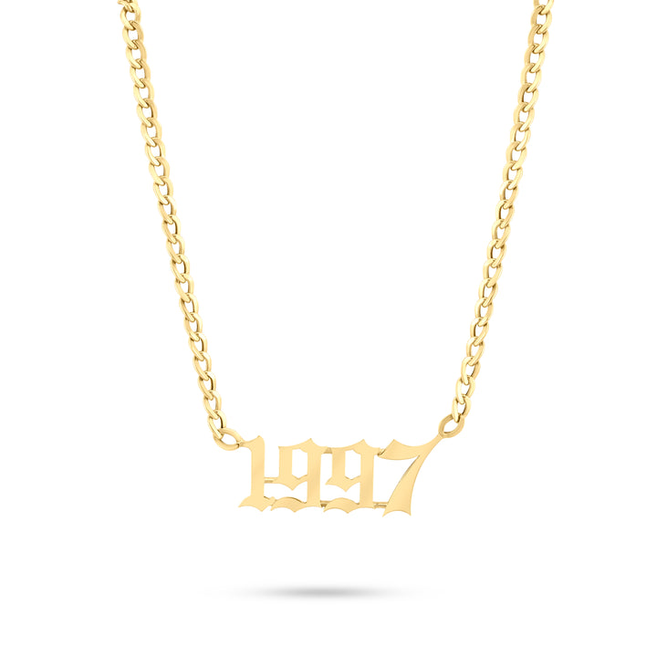 A GOLD “1997” PENDANT NECKLACE FROM SAYAN'S JEWELLERY COLLECTION; DESIGNED AS A BOLD STATEMENT PIECE.