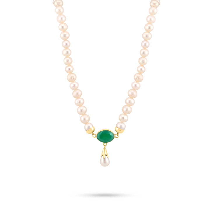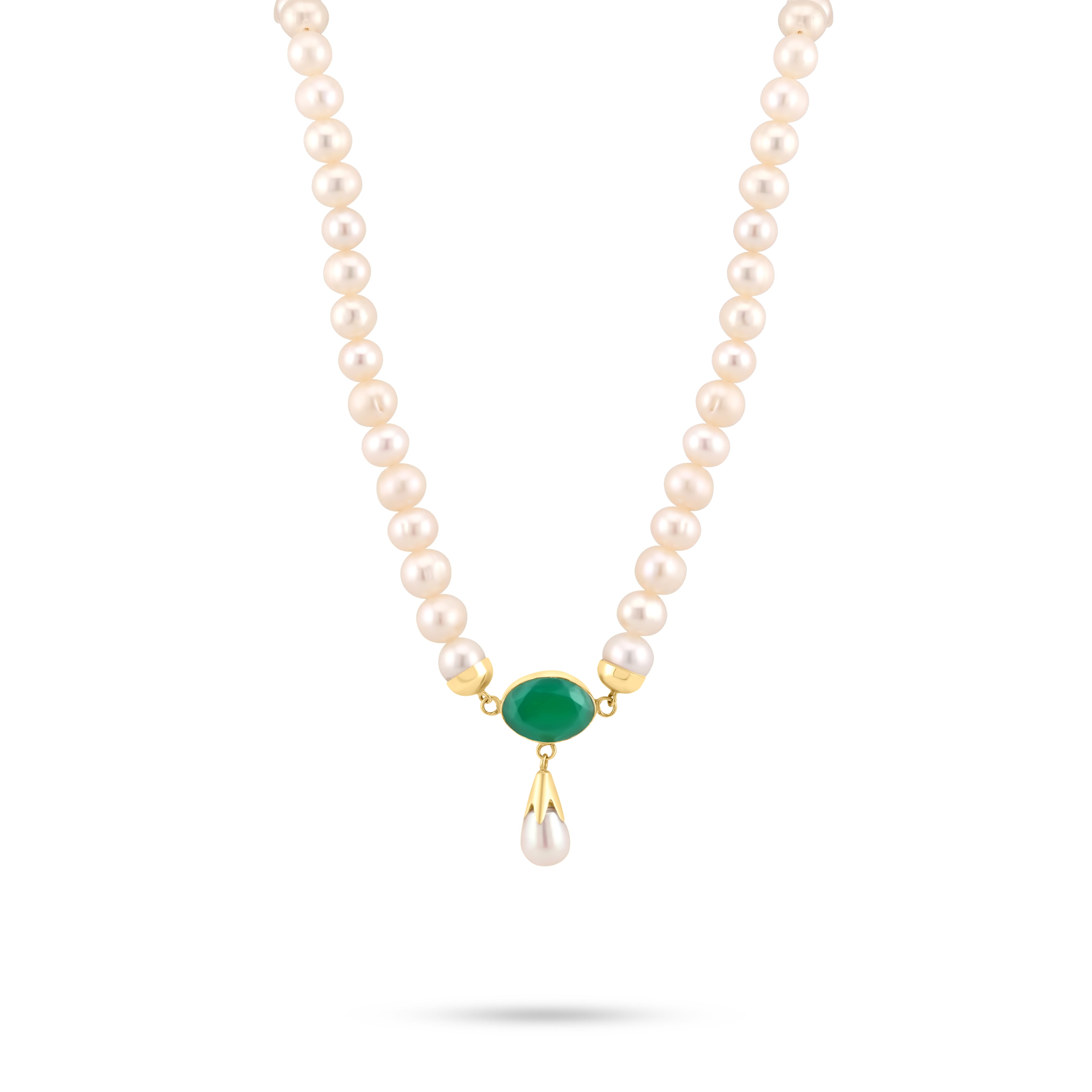 PEARL NECKLACE WITH GREEN ONYX AND DROP PEARL PENDANT