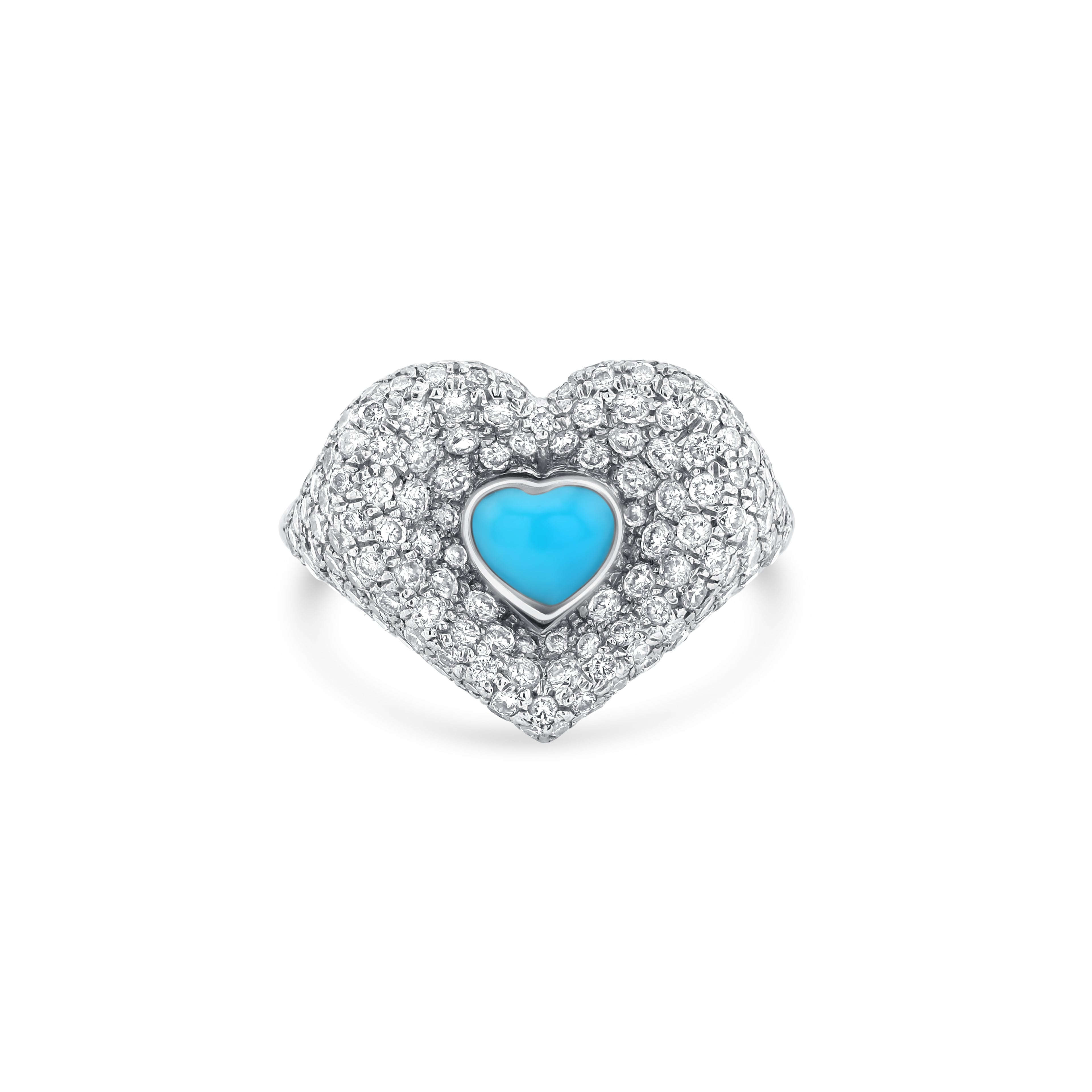 HANDCRAFTED IN 18K GOLD AND SET WITH NATURAL DIAMONDS, THIS HEART-SHAPED PINKY RING FEATURES A VIBRANT TURQUOISE, THE BIRTHSTONE OF DECEMBER, SYMBOLIZING PROTECTION, WISDOM, AND CALM ENERGY.